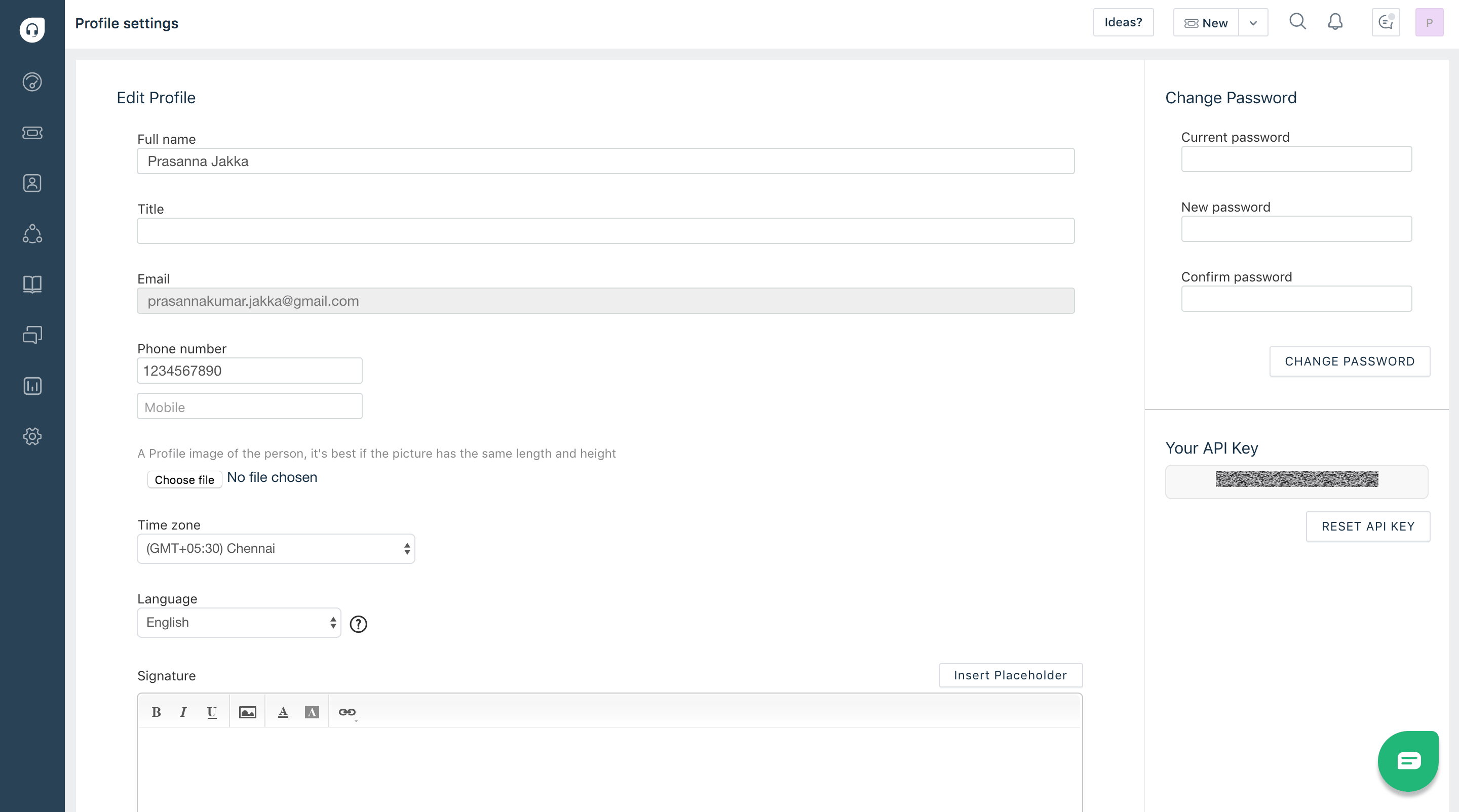 Go to Profile -> Profile Settings tab inside your Freshdesk account